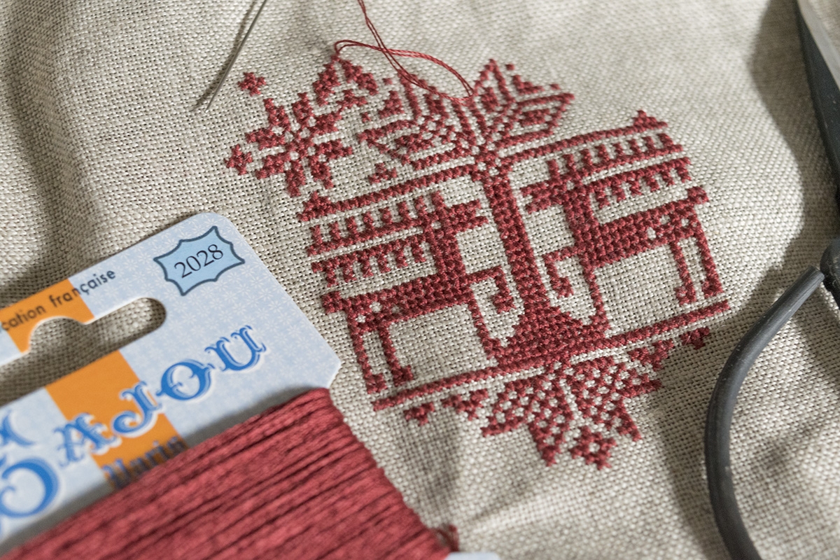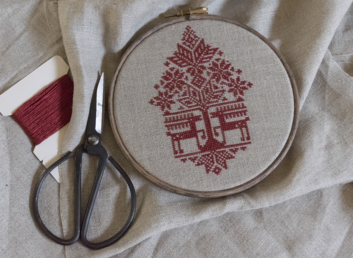 I could say that I embraced these errors because I simply couldn’t afford to start again, but the fact is that I like my mistakes. Yep. I like them. Unless they really totally mess up the design, they belong there, in a weird way. And in this blogpost I wanted to call out to fellow stitchers who are too afraid to show their mistakes: it’s all okay! So my reindeer has an extra antler bit to make up for the fact that I started it in the wrong spot, and is pretty much nearly eating my Christmas tree. But since I had already stitched the whole reindeer I decided to repeat the error on the other side of the tree, and now it’s like it’s supposed to be like that!