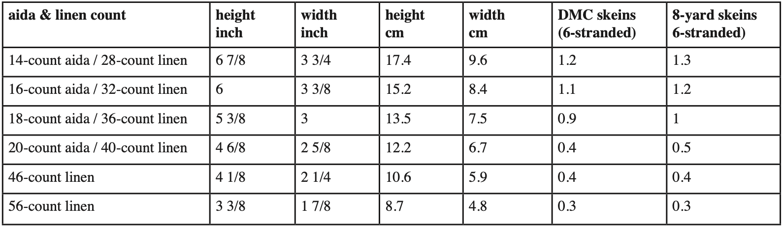 width: 53 crosses