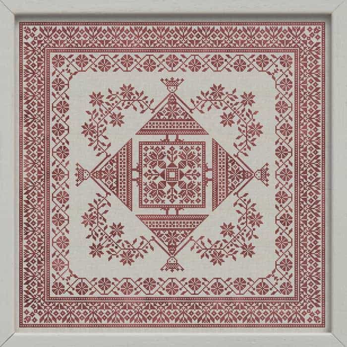 This pattern measures 271 crosses in height and width. Stitched over two threads on 32 count linen, it would approximately measure 17” by 17” (43 by 43cm).