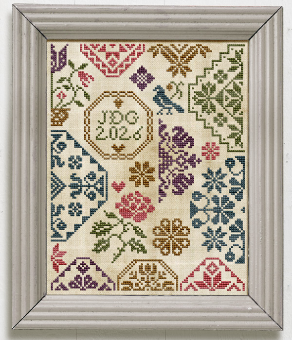 The Quick Quaker is a small Quaker-style medallion sampler, designed for those of us that love those big Quaker sampler but might be a little intimidated by the sheer size of some of the antique examples (or just fancy a fun smaller project). I have designed this pattern to be stitched as a 30-day Stitch-A-Long (SAL) starting on the 1st of April 2026. Each day, we’ll be stitching about 145 crosses – which should be very manageable, and will result in a finished sampler on the 30th of April!